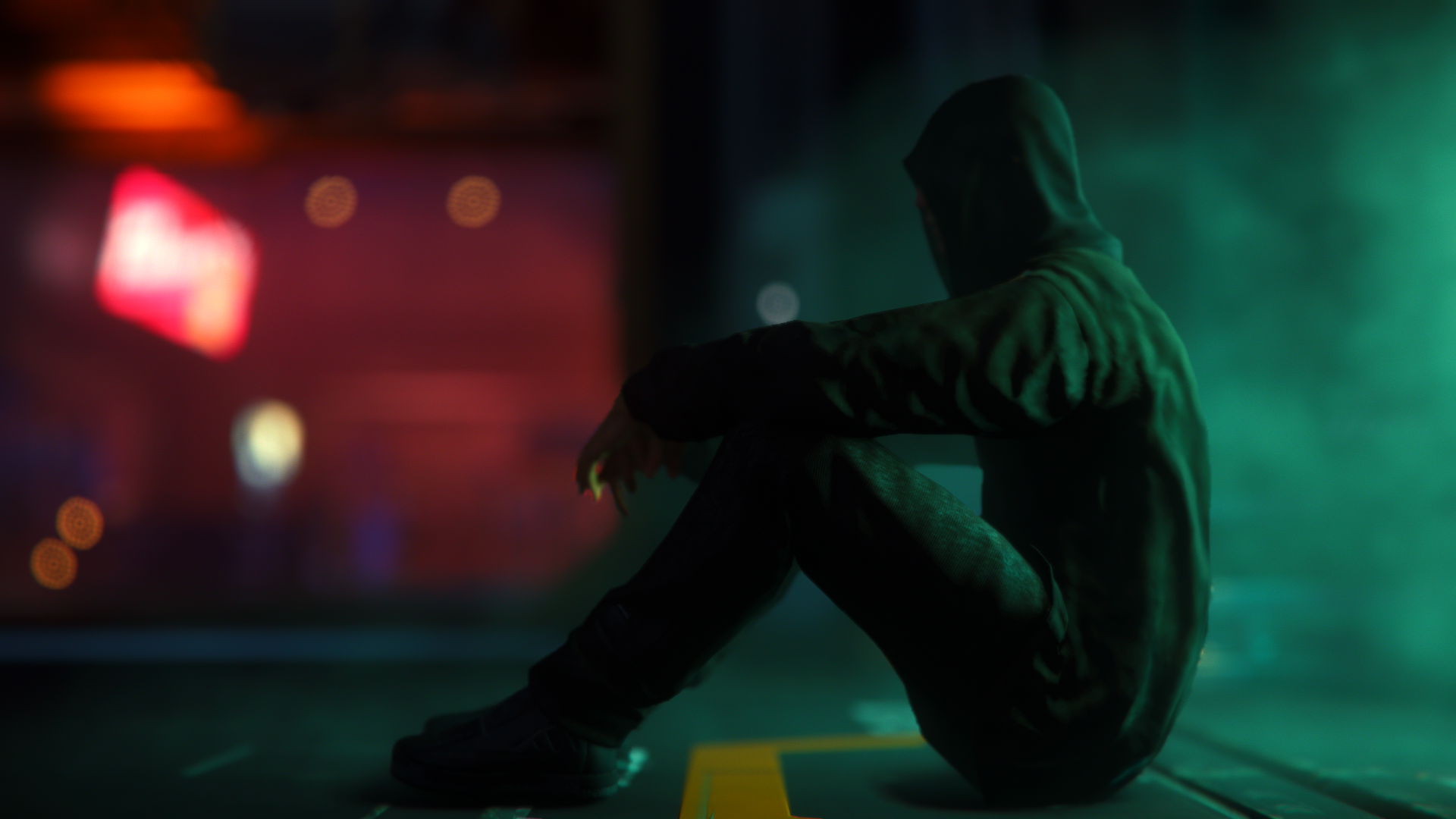 I see so much solitude in the subject’s hung head here. Combine that with the lighting and atmosphere of GrimHEX and a great composition = a well executed shot.Hasgaha