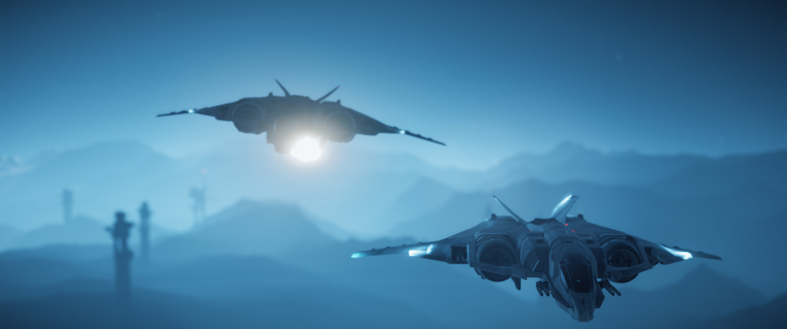 Immediately, the detail in the Gladius jumps out at me here. While sunset screenshots are about as common as 30ks, the detail in this shot works great with the gradient of colors and wispy clouds. Though I would opt for no dirt in the air, a product of the location, and I would also want to see the ground to provide more sense of scale with the trees.SpaceTomato