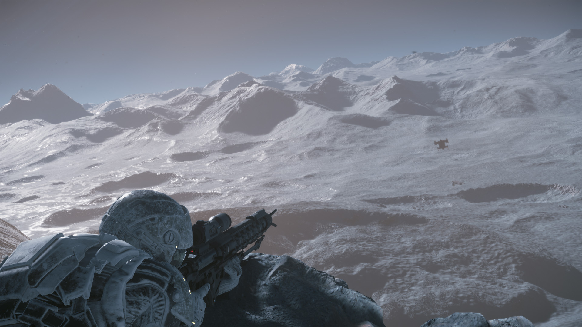 Another not-so-unique image within Star Citizen, but again, one executed brilliantly. For me, the lighting and framing is perfect and makes this a joy to look at. A mostly silhouetted figure with only minimal highlights set against an offset microTech. Well done.Hasgaha