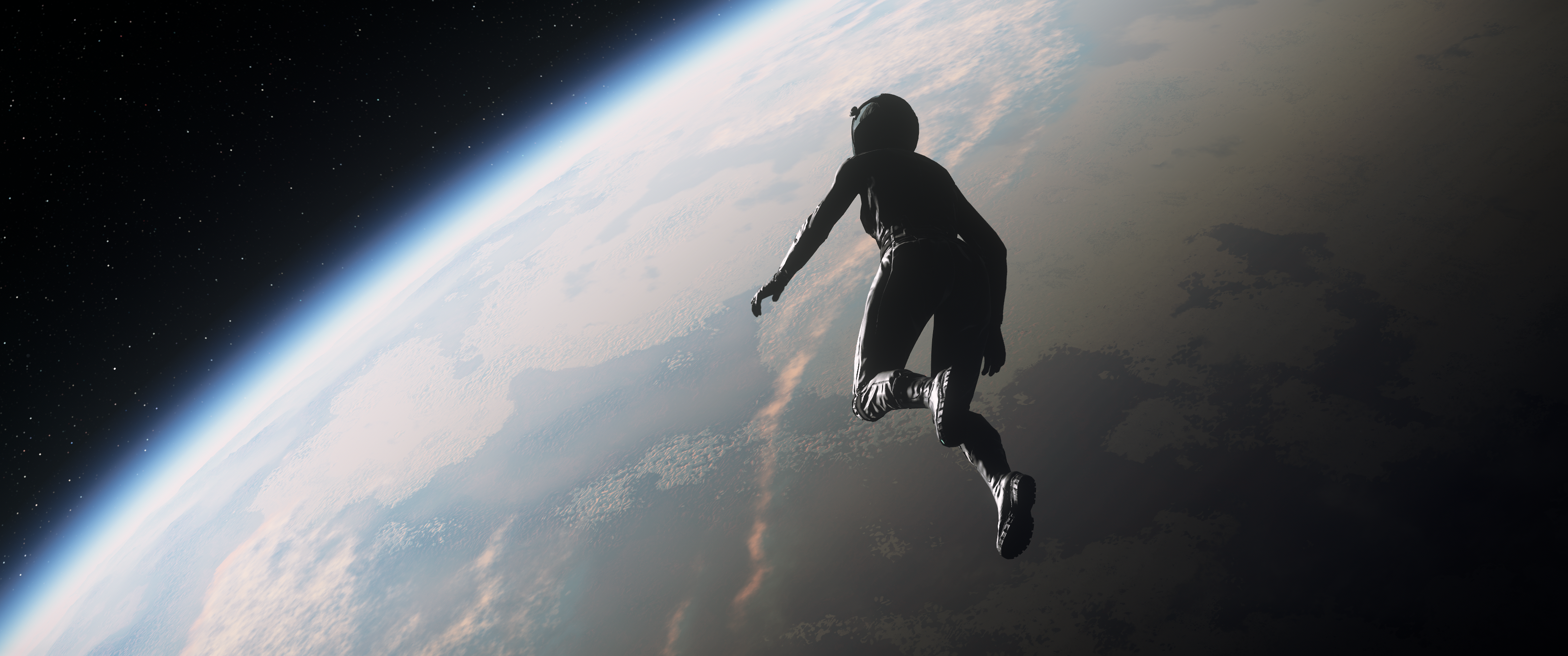 One of the more unique and creative interpretations of the theme. A low camera angle looking up at a person looking up from Olisar orbiting Crusader below… or above. The lighting from shadow to light follows the gaze of the person and creates a nice visual flow for the viewer.Hasgaha