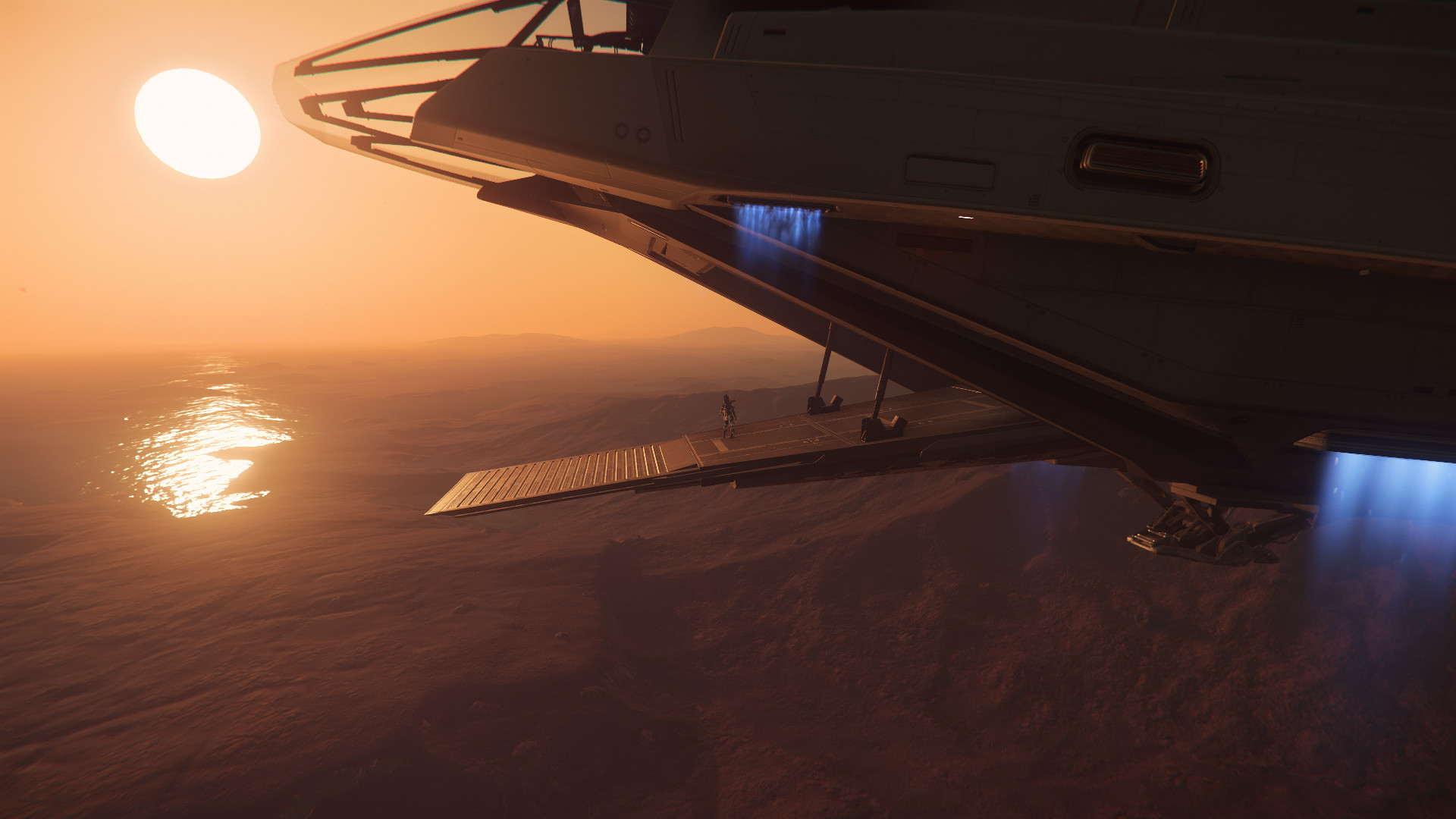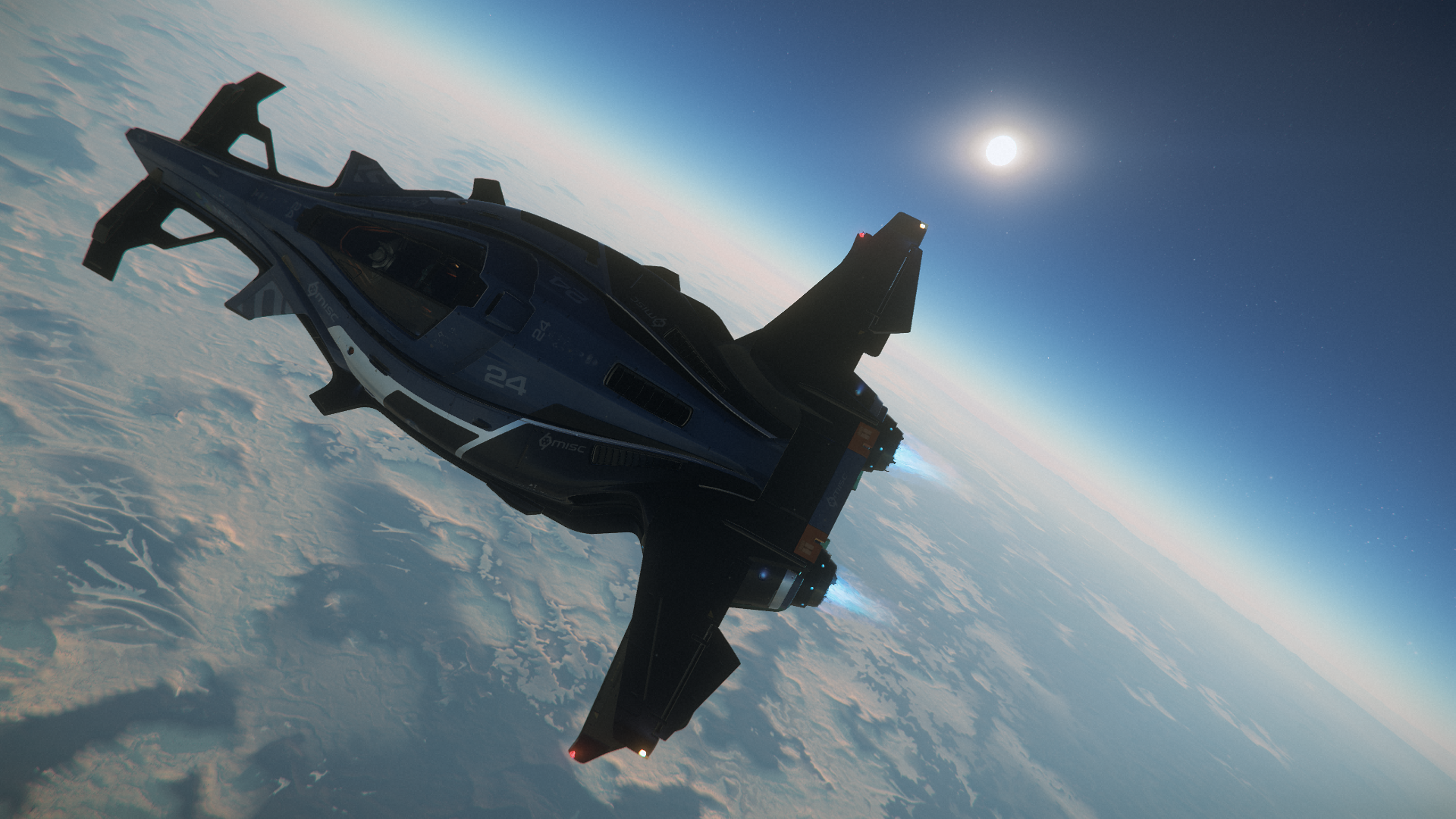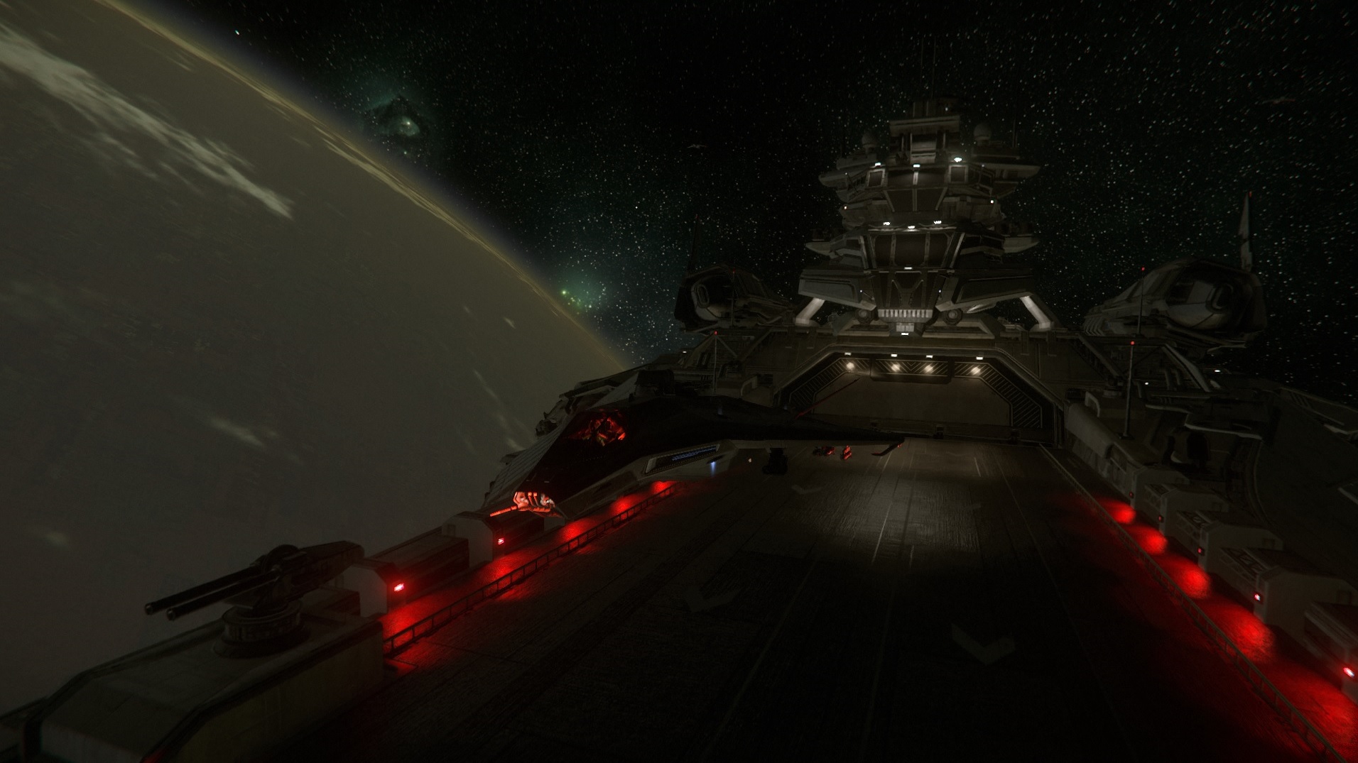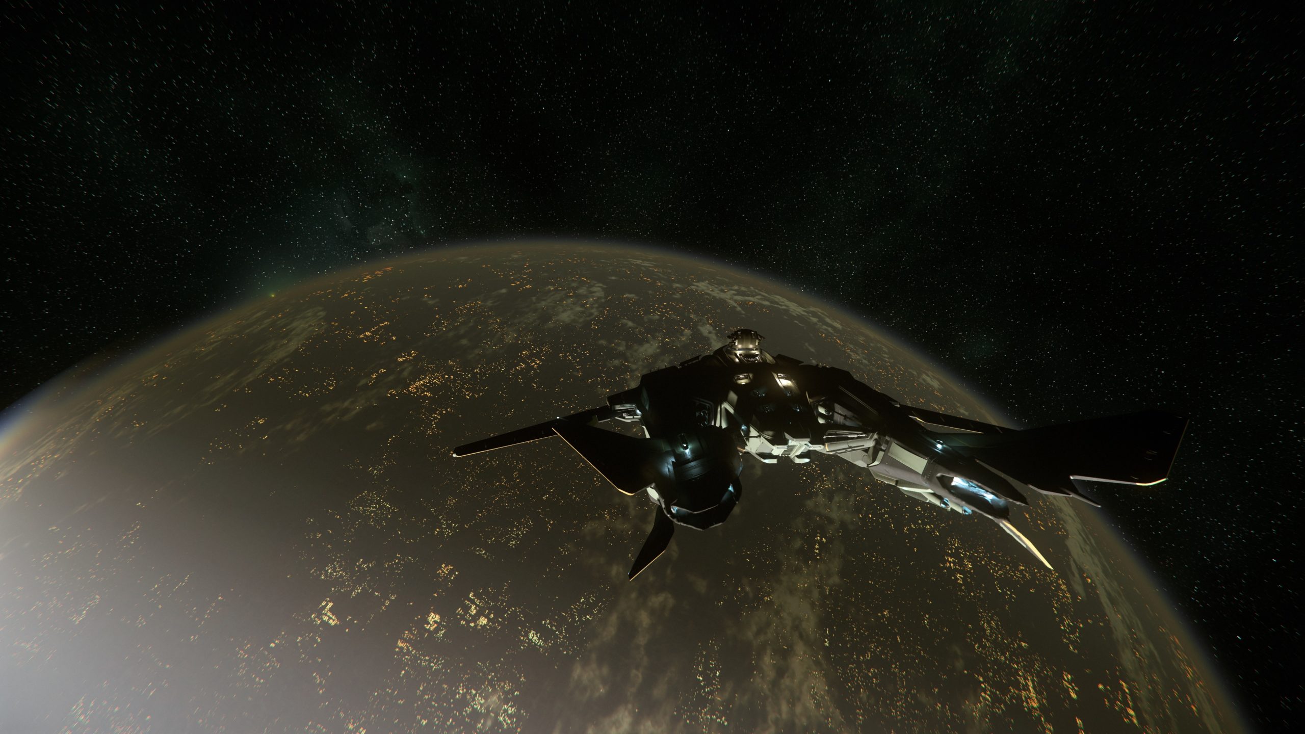 While we’ve seen this shot done a lot recently with our new and beloved Crusader, it captured the transition of the light and dark sides of the both the planet and the Carrack, our tantamount symbol of exploration. In space, the concept of above or below has many possible orientations or meanings, and one needs to interpret for themselves if the light, the dark, the planet, or the ship are “from above”.Stim Citizen