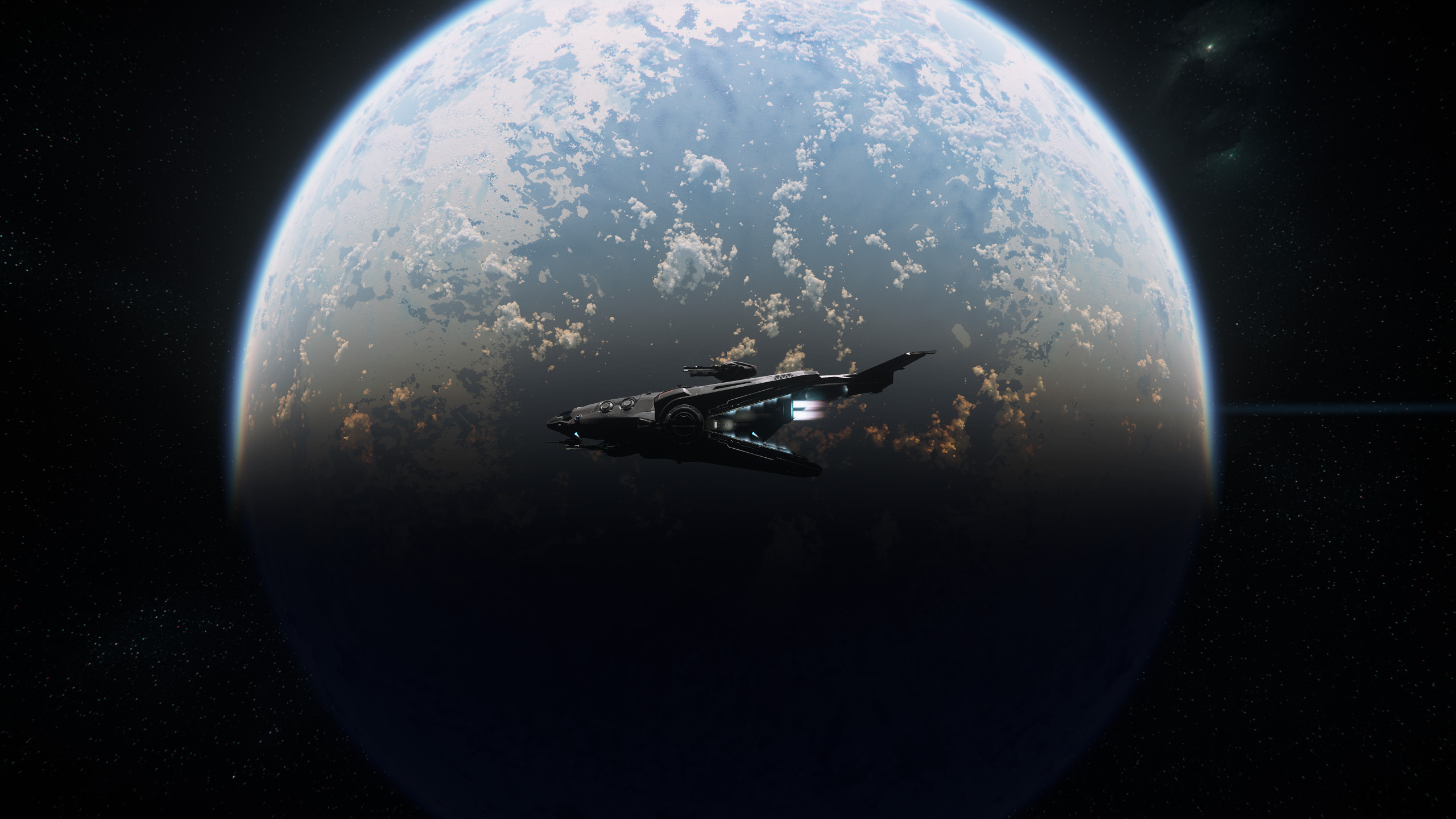 While we’ve seen this shot done a lot recently with our new and beloved Crusader, it captured the transition of the light and dark sides of the both the planet and the Carrack, our tantamount symbol of exploration. In space, the concept of above or below has many possible orientations or meanings, and one needs to interpret for themselves if the light, the dark, the planet, or the ship are “from above”.Stim Citizen