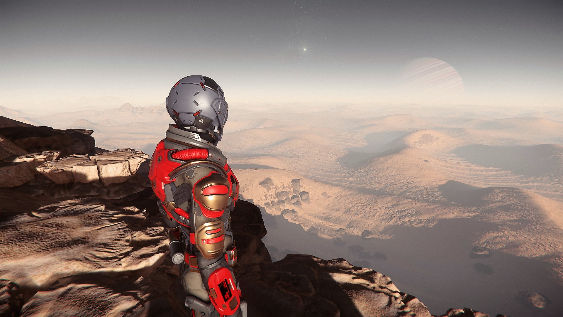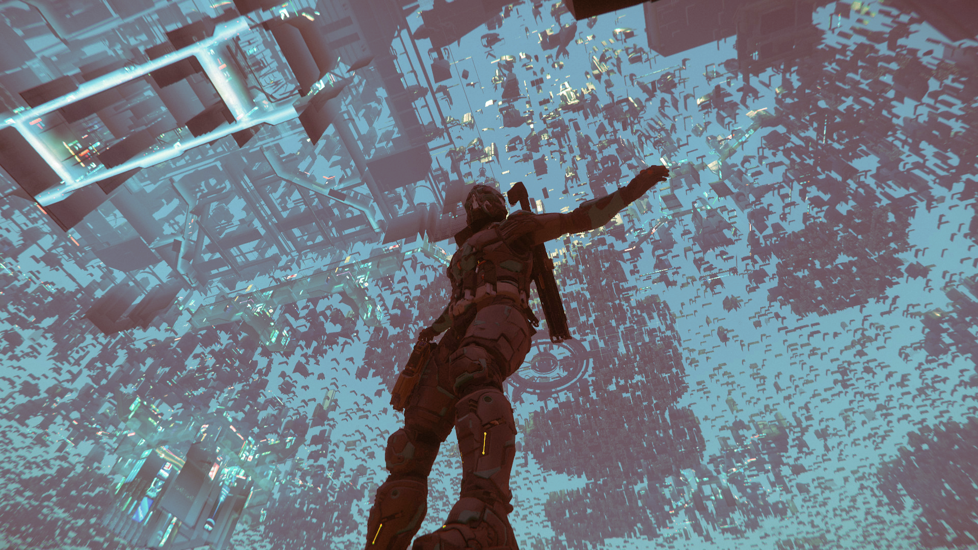 A very cleverly captured shot that challenges our perspective of what’s above and what’s below. We see the clouds of Crusader that seem to provide a primary reference, and then the Character and the rings of Olisar take it away all over, creating an arid suspense within the composition. The choice of the Artimex armor and the Yubarev pistol, more specifically their gold accents provide the much necessary contrast to the blandness of the gas giant.RedSolstice