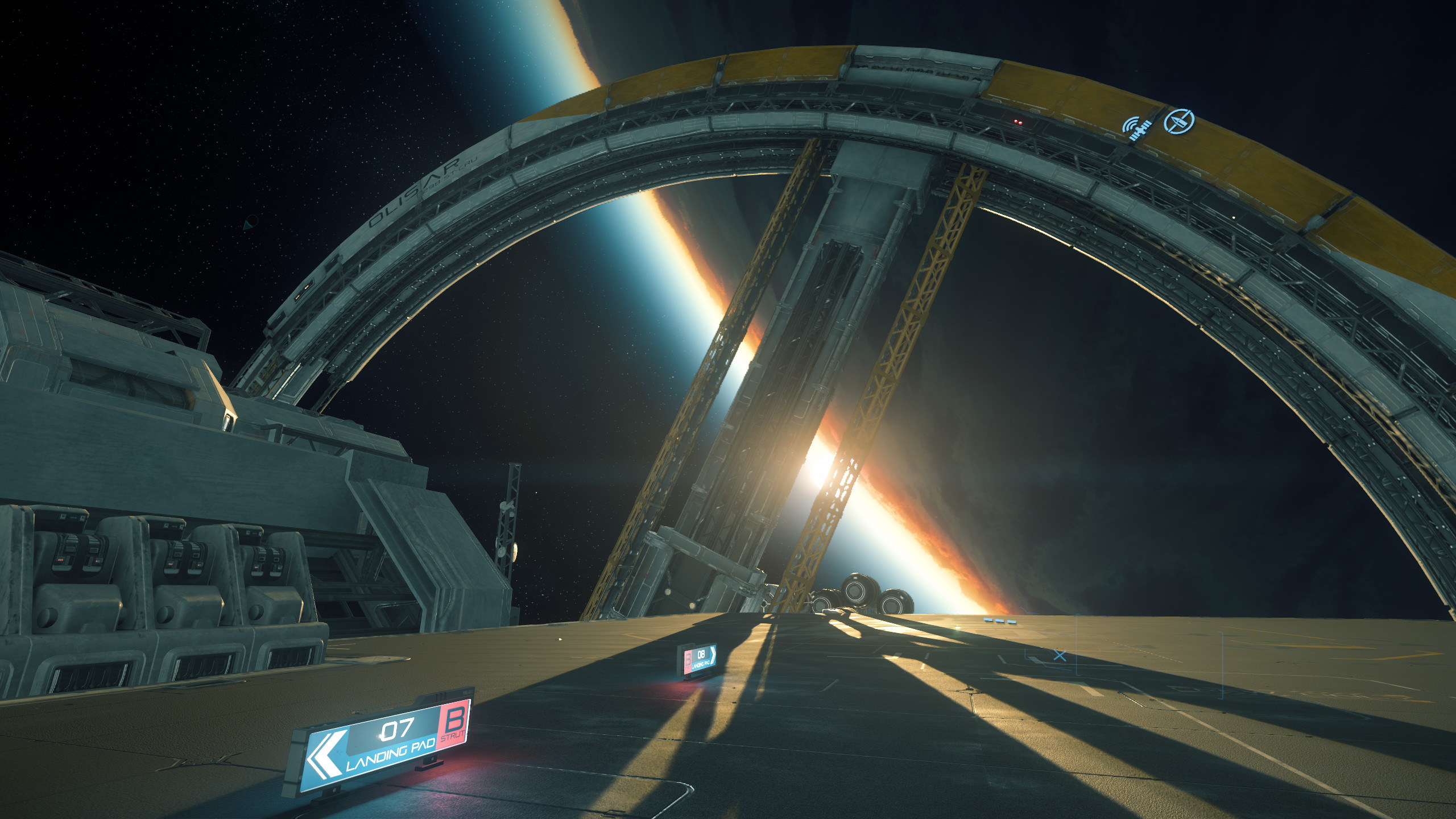 One of the more unique and creative interpretations of the theme. A low camera angle looking up at a person looking up from Olisar orbiting Crusader below… or above. The lighting from shadow to light follows the gaze of the person and creates a nice visual flow for the viewer.Hasgaha