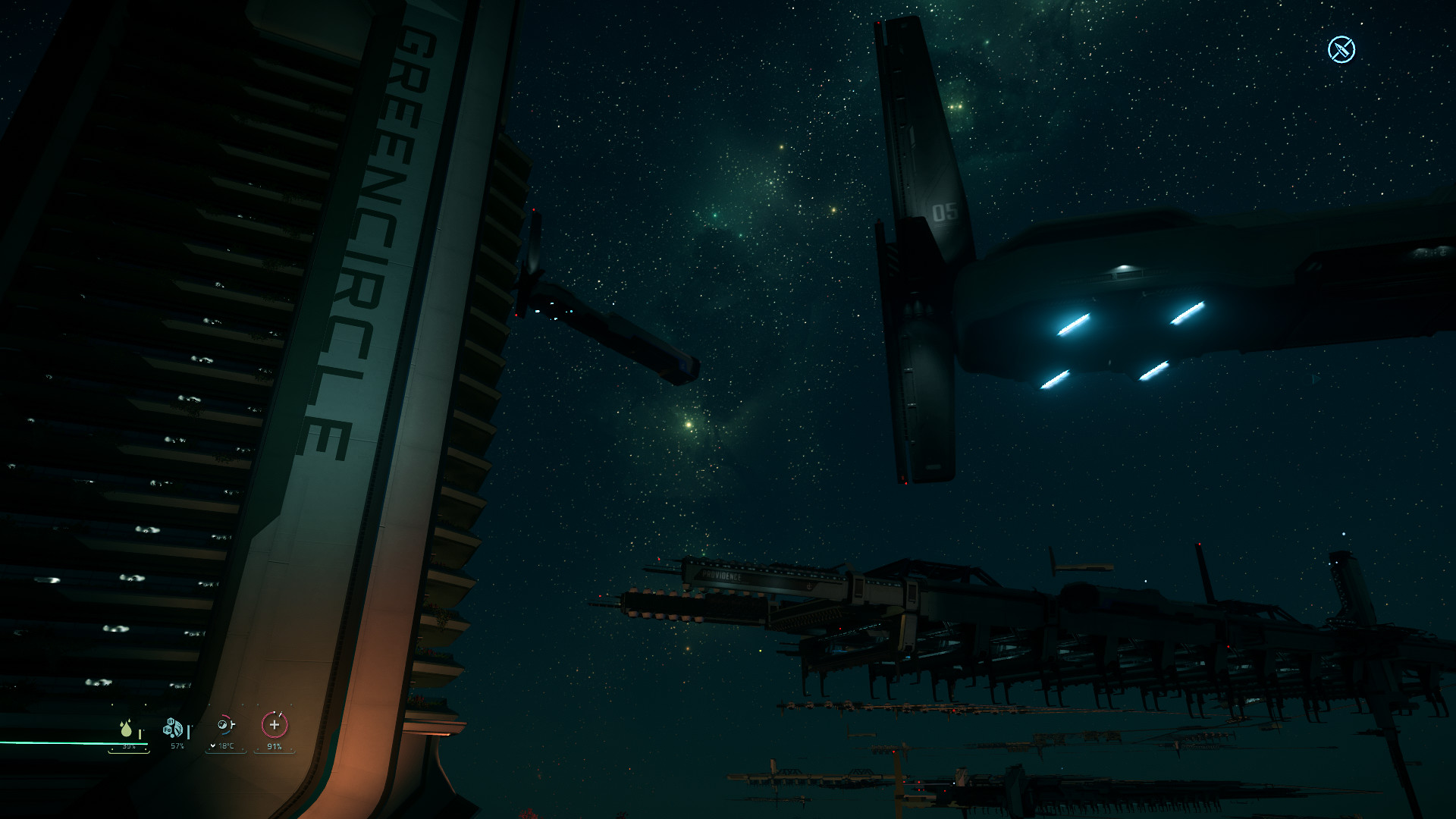 The juxtaposition on what is looking up or down from above in this picture absolutely smashes my mind. The subject’s perspective looking along the lines of the shadows in crusader’s clouds really gives this image the only solid direction to anchor as a reference. Couple that with the brilliant framing, and to me the actual “subject” of the photo is the perspective between reference points – Olisar vs Crusader. Which one do you think is “Above” the otherStim Citizen