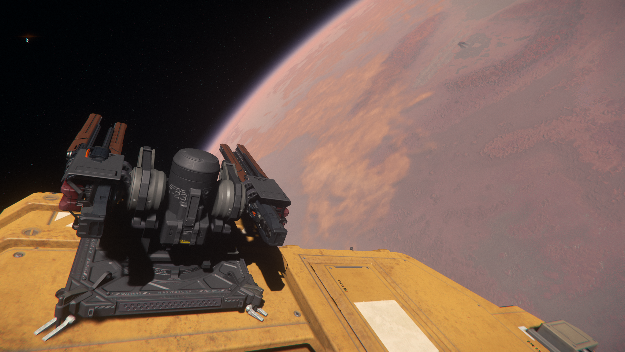 While we’ve seen this shot done a lot recently with our new and beloved Crusader, it captured the transition of the light and dark sides of the both the planet and the Carrack, our tantamount symbol of exploration. In space, the concept of above or below has many possible orientations or meanings, and one needs to interpret for themselves if the light, the dark, the planet, or the ship are “from above”.Stim Citizen