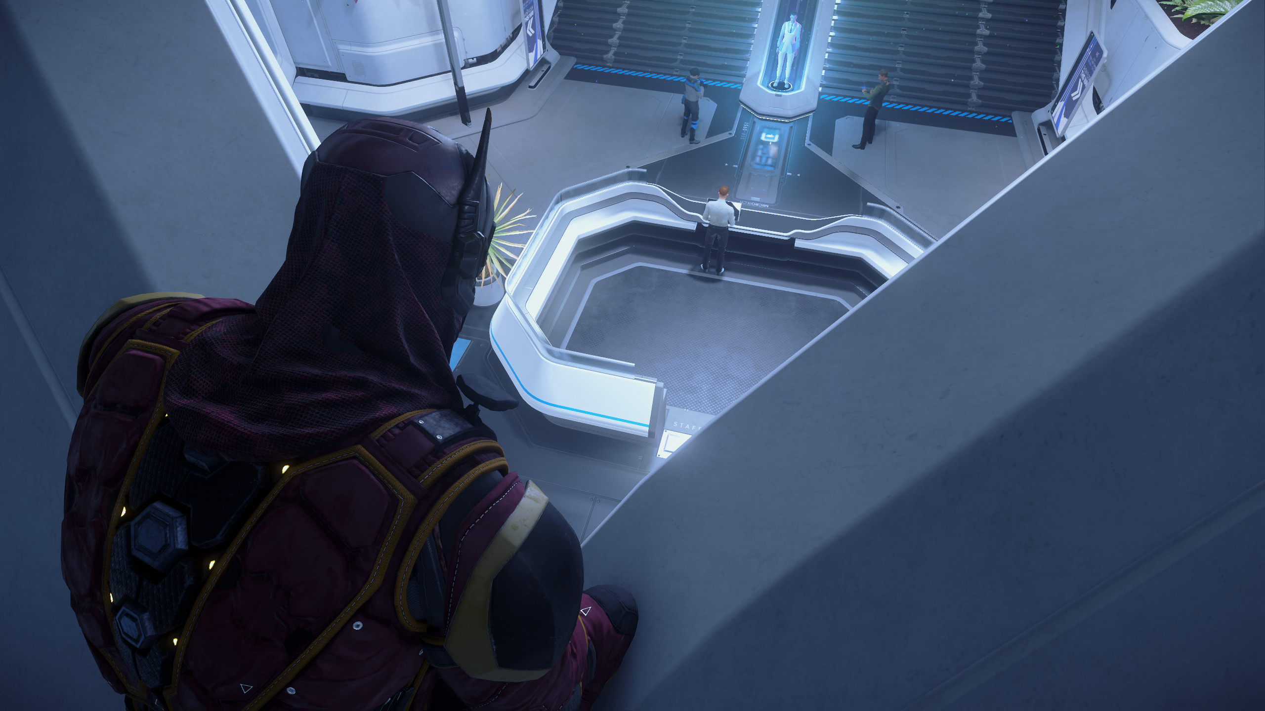One of the more unique and creative interpretations of the theme. A low camera angle looking up at a person looking up from Olisar orbiting Crusader below… or above. The lighting from shadow to light follows the gaze of the person and creates a nice visual flow for the viewer.Hasgaha