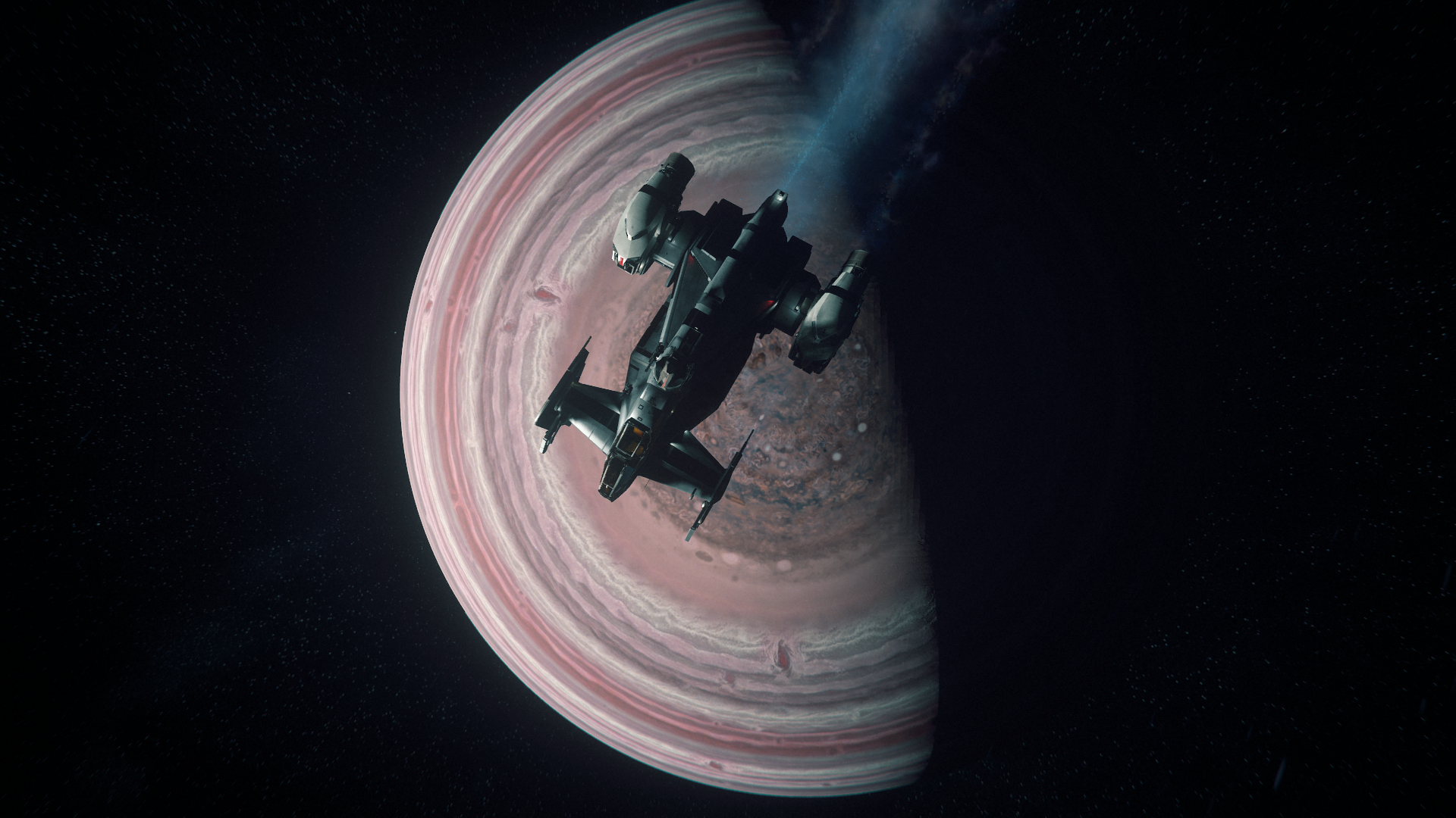 While we’ve seen this shot done a lot recently with our new and beloved Crusader, it captured the transition of the light and dark sides of the both the planet and the Carrack, our tantamount symbol of exploration. In space, the concept of above or below has many possible orientations or meanings, and one needs to interpret for themselves if the light, the dark, the planet, or the ship are “from above”.Stim Citizen