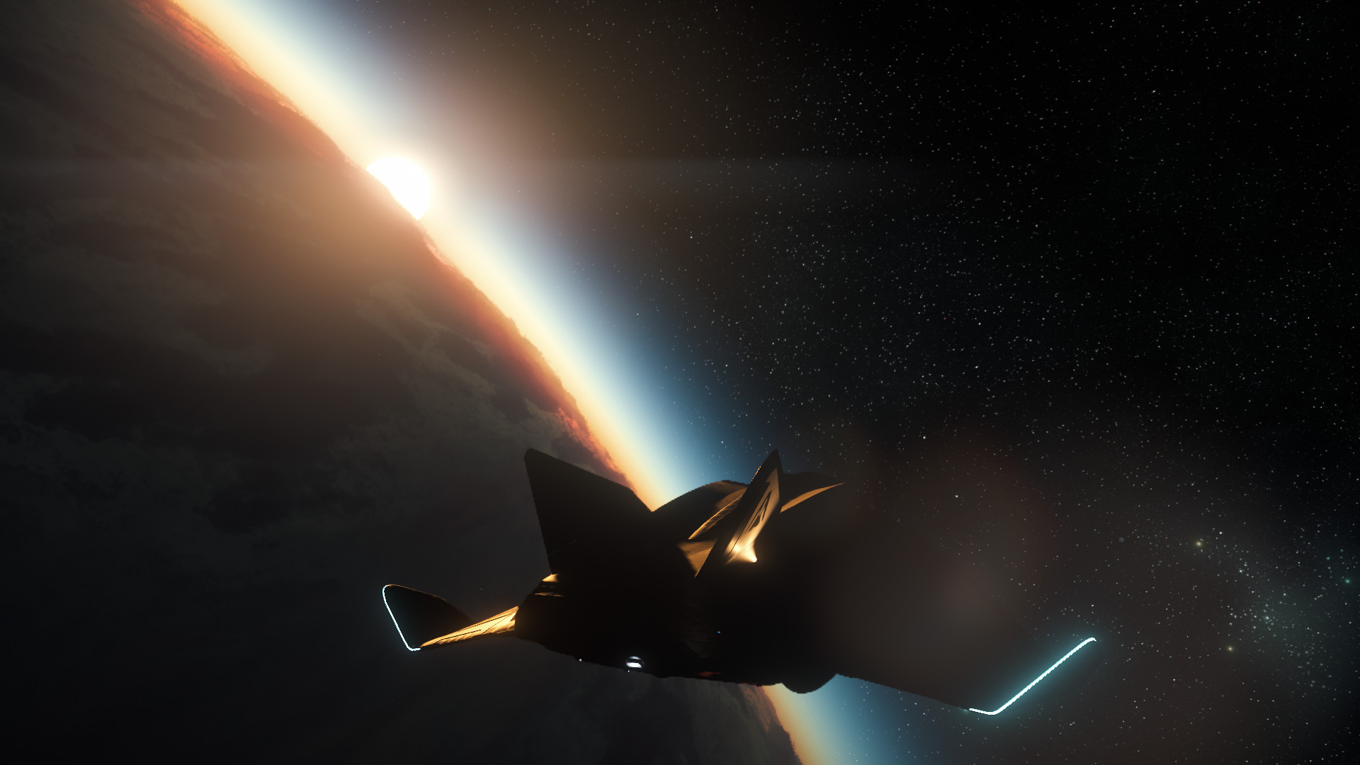 While we’ve seen this shot done a lot recently with our new and beloved Crusader, it captured the transition of the light and dark sides of the both the planet and the Carrack, our tantamount symbol of exploration. In space, the concept of above or below has many possible orientations or meanings, and one needs to interpret for themselves if the light, the dark, the planet, or the ship are “from above”.Stim Citizen
