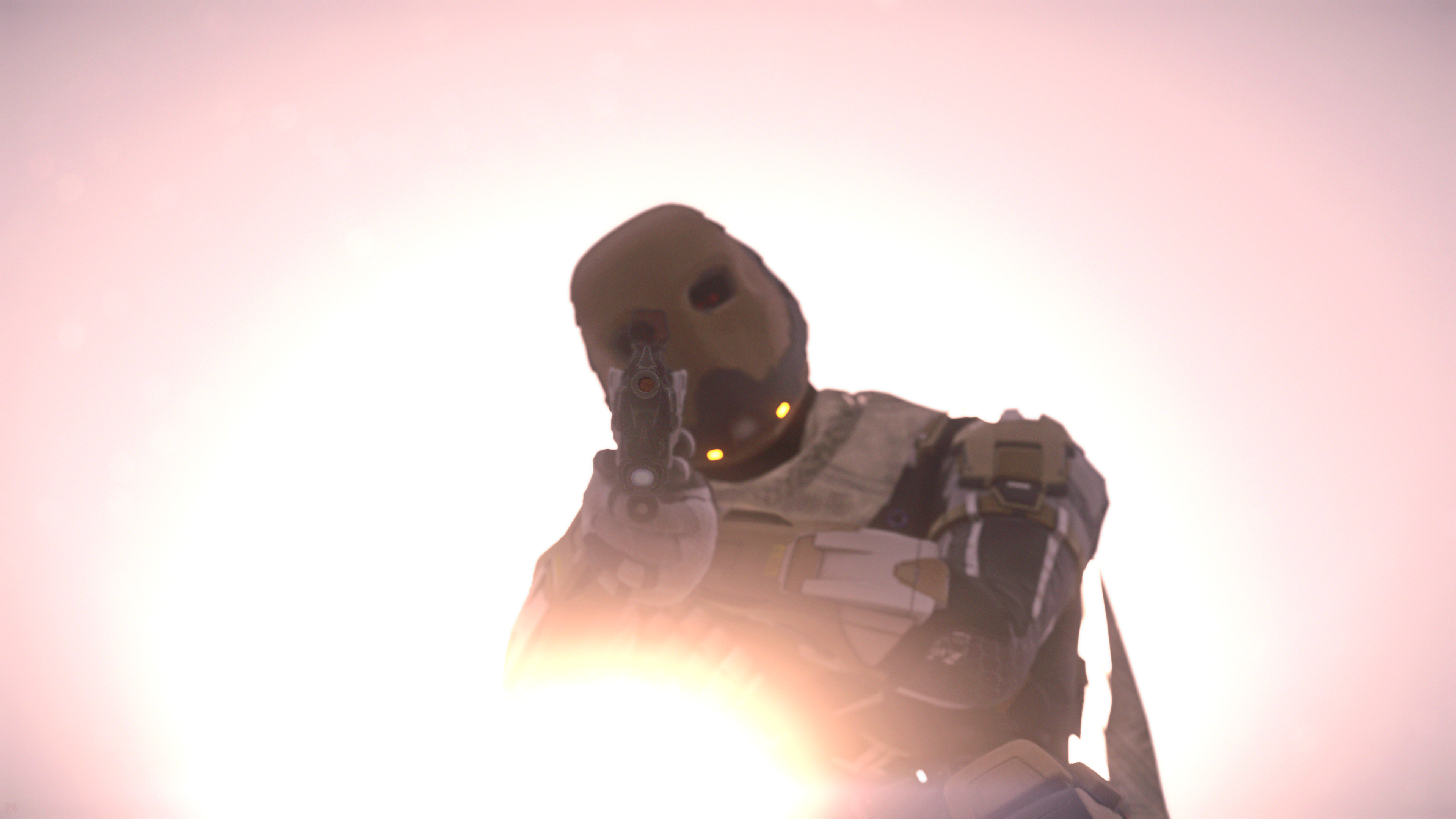 A very cleverly captured shot that challenges our perspective of what’s above and what’s below. We see the clouds of Crusader that seem to provide a primary reference, and then the Character and the rings of Olisar take it away all over, creating an arid suspense within the composition. The choice of the Artimex armor and the Yubarev pistol, more specifically their gold accents provide the much necessary contrast to the blandness of the gas giant.RedSolstice