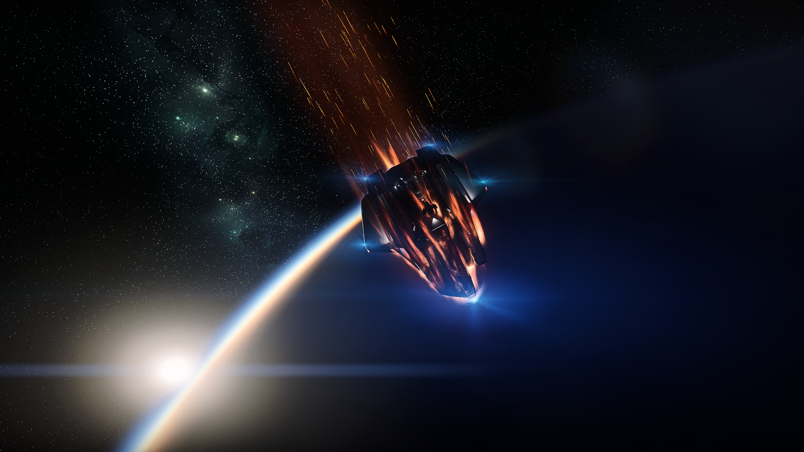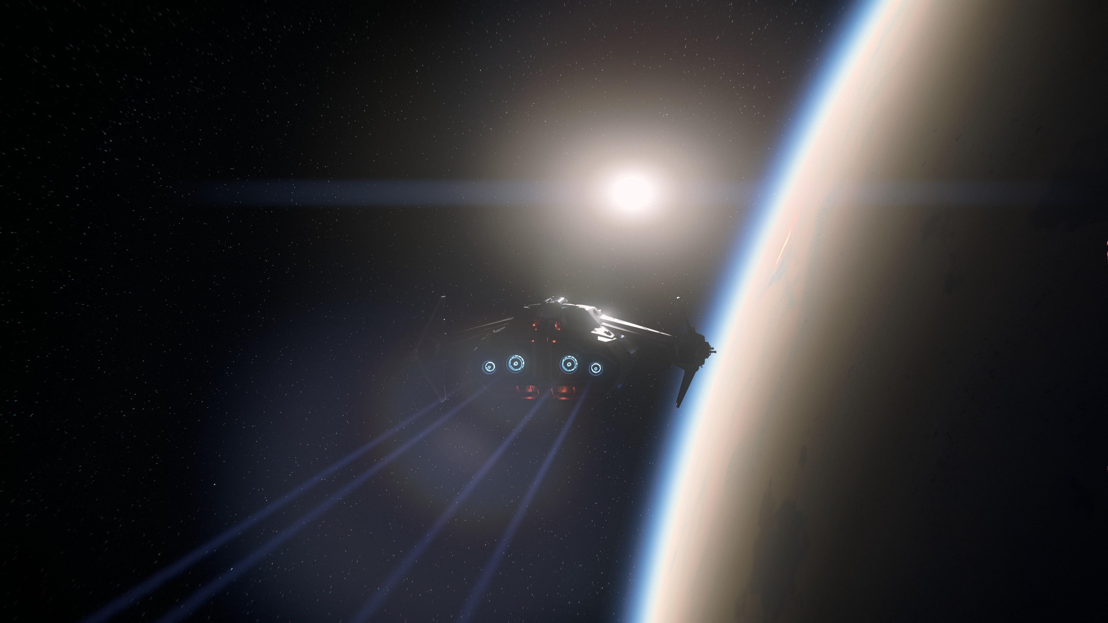 While we’ve seen this shot done a lot recently with our new and beloved Crusader, it captured the transition of the light and dark sides of the both the planet and the Carrack, our tantamount symbol of exploration. In space, the concept of above or below has many possible orientations or meanings, and one needs to interpret for themselves if the light, the dark, the planet, or the ship are “from above”.Stim Citizen
