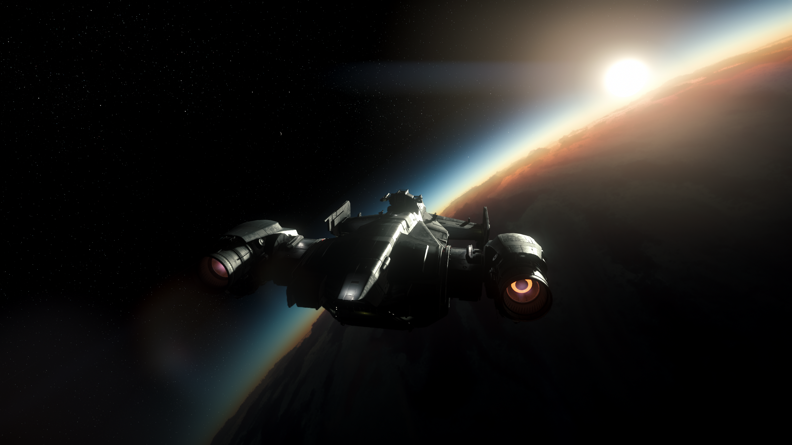 “Winners do ordinary things in extraordinary ways”. That’s the exact definition of this shot for me. I’m not surprised this shot came out on top. We’ve all seen this view in the verse on numerous occasions, but this shot captures that very aspect differently. The transition from the light to dark side, using the Poles of the planet to capture the gradients of Crusader while giving it a virtual sense of being taken “from above” and the Carrack being the bolster to shut and lock the deal on that old nostalgic Crusader. Truly remarkable!RedSolstice