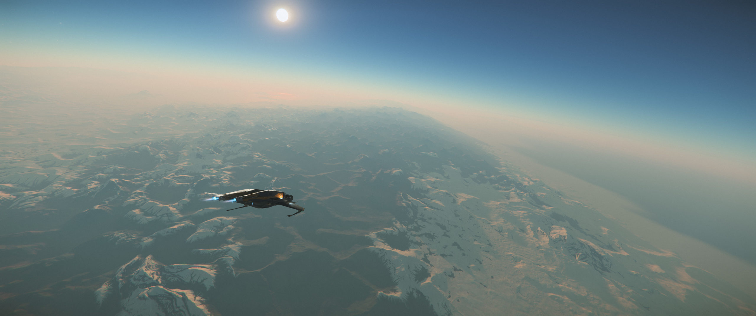 While we’ve seen this shot done a lot recently with our new and beloved Crusader, it captured the transition of the light and dark sides of the both the planet and the Carrack, our tantamount symbol of exploration. In space, the concept of above or below has many possible orientations or meanings, and one needs to interpret for themselves if the light, the dark, the planet, or the ship are “from above”.Stim Citizen