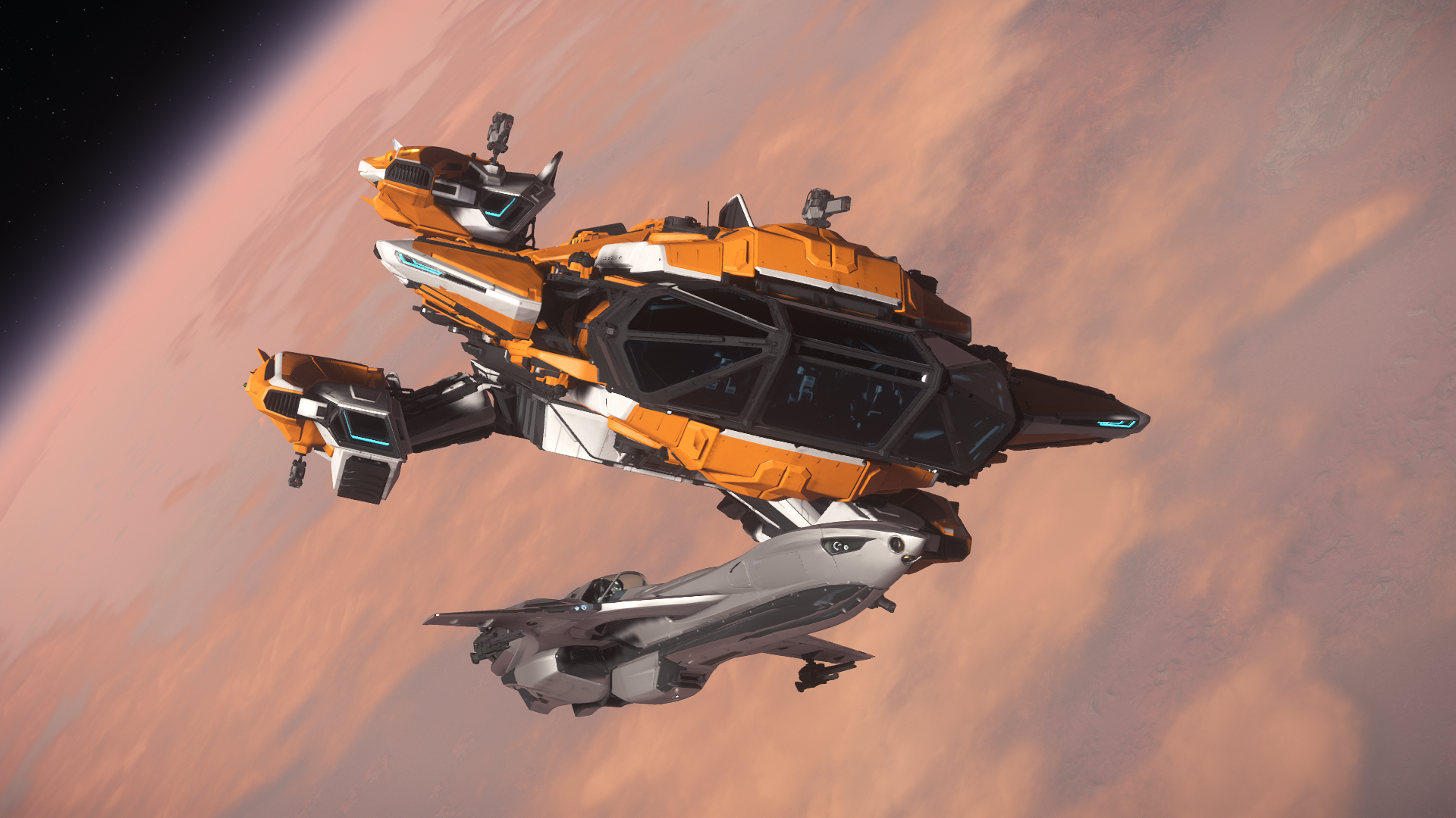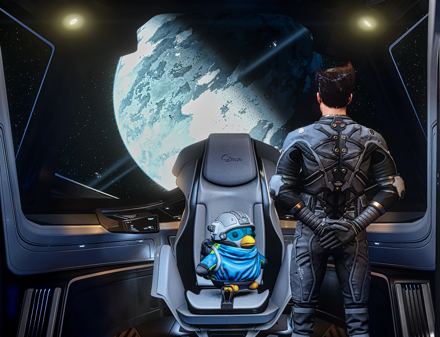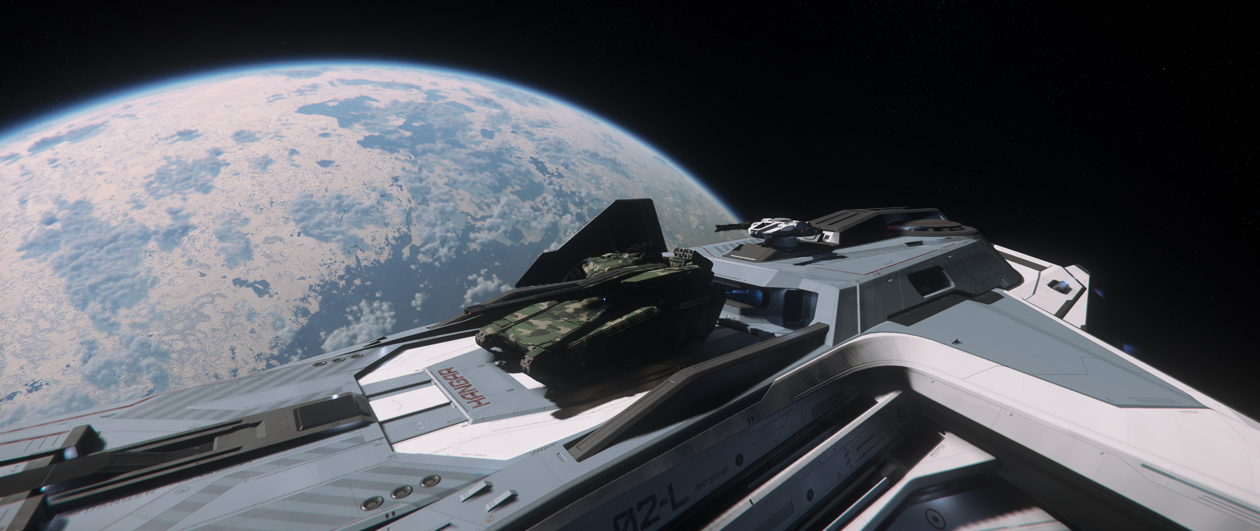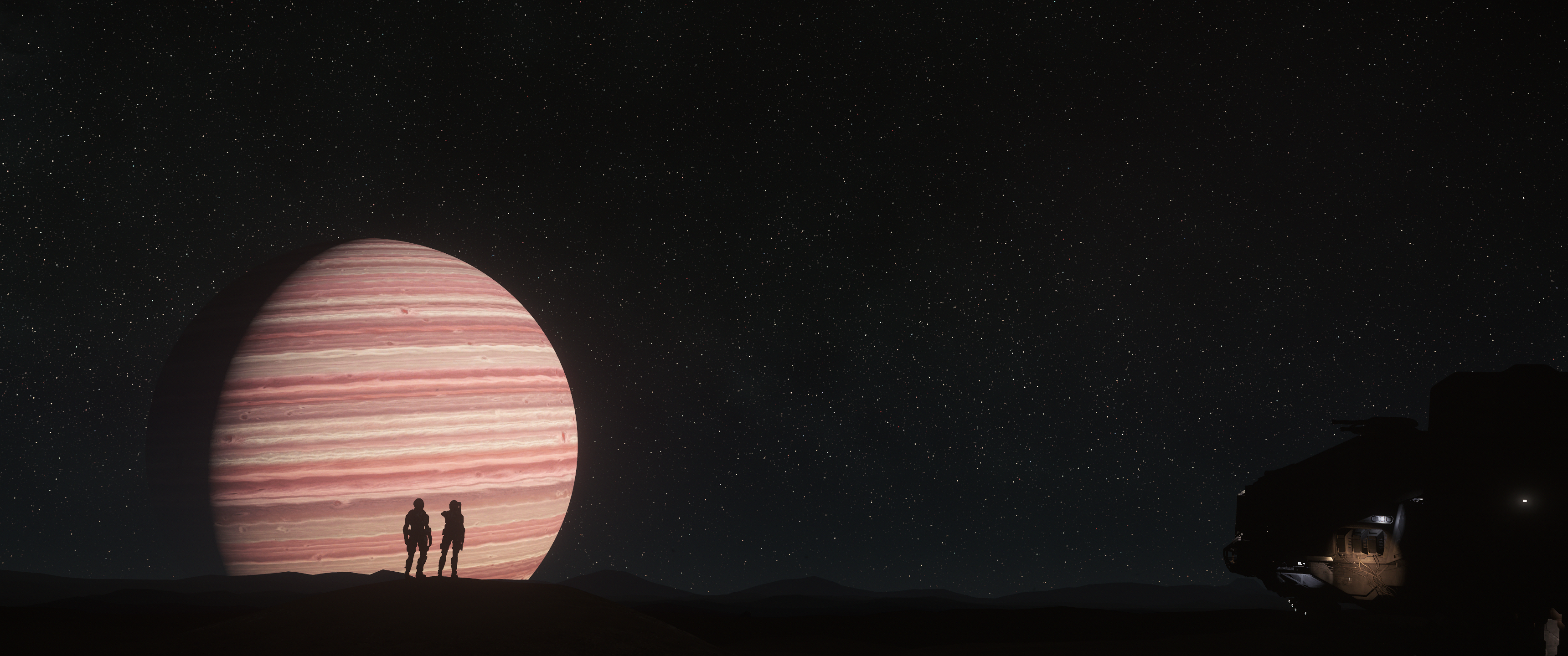 Shots like this are really what does it for me. Really simple, nothing over the top, but It shows a sense of scale that’s quite hard to get in other games. The vast plain of what I assume is Daymar, the gas giant lurking in the background, the chonky boi sitting in the corner and our two little shadowy friends enjoying the vistas together. Beautifully done!MAXPER