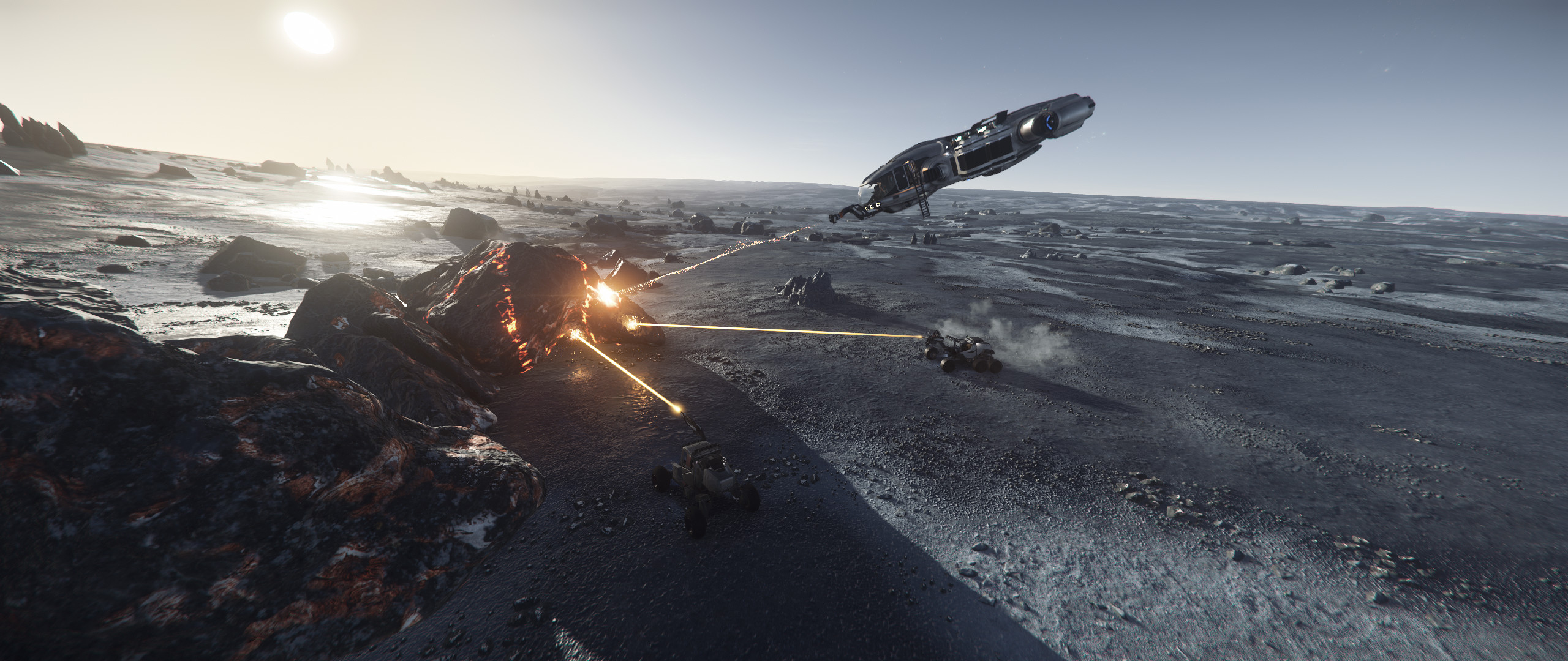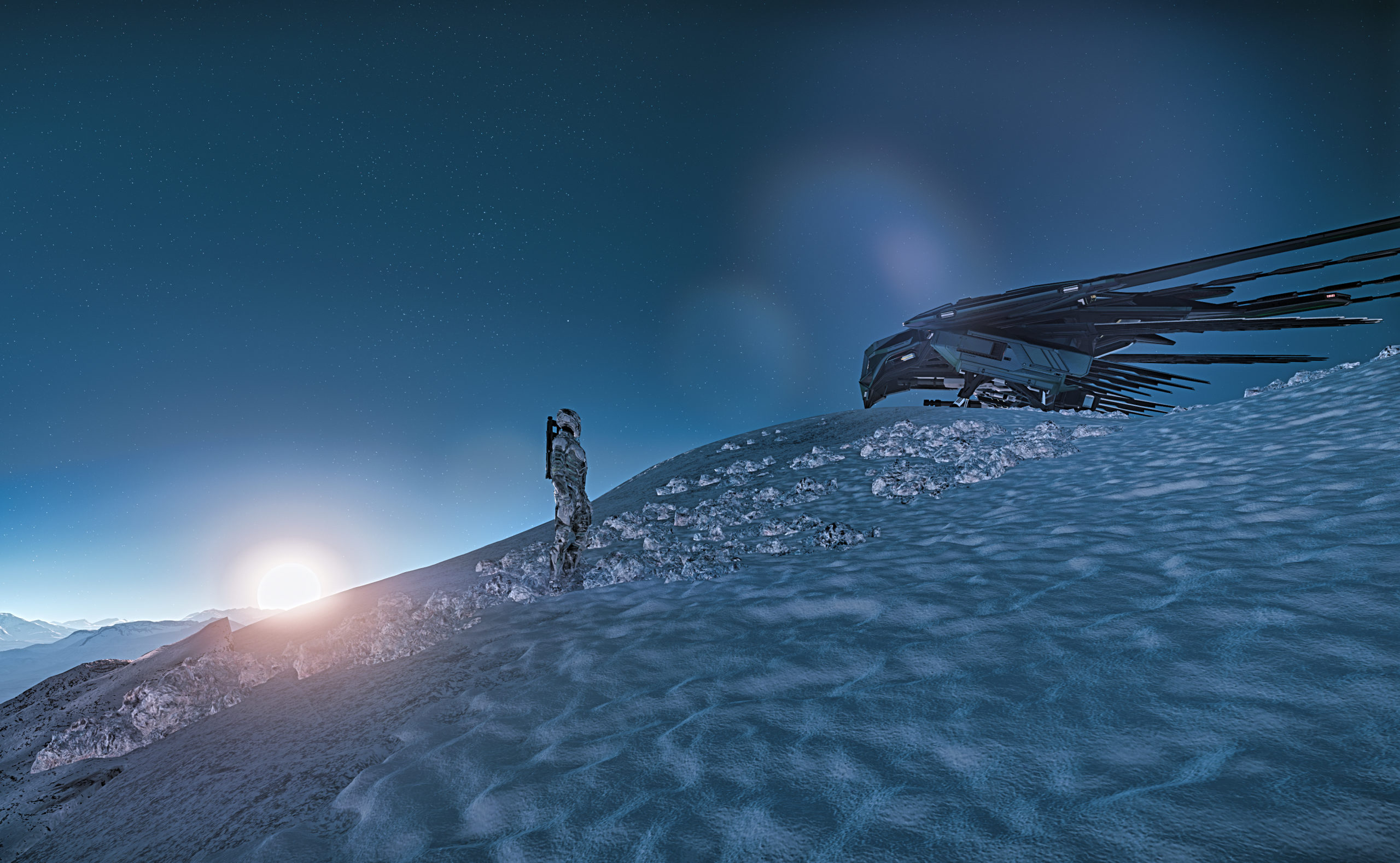 I’m a sucker for silhouettes on the horizon and this is a good start but I think a crop might have helped this shot. I like the expansive, flatness of the wide shot but I find the Reclaimer on the right side to be a distraction. Maybe if the Reclaimer had been further in the distance and fully in frame. OR, just crop the Reclaimer out completely. This is a scene I would absolutely revisit and try again (using the current version of Crusader) because it’s so close to perfection.Hasgaha