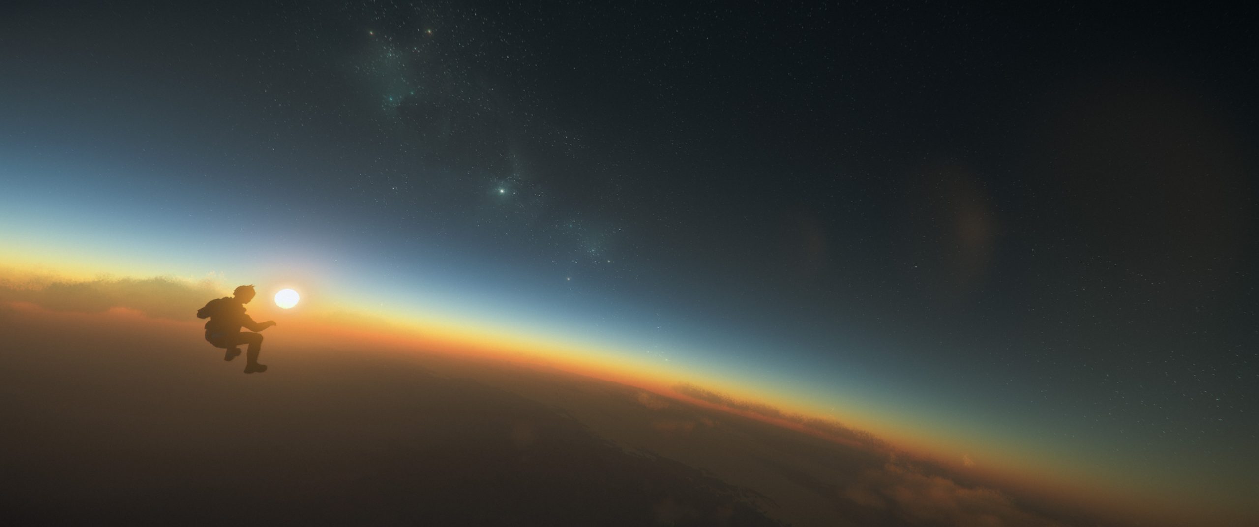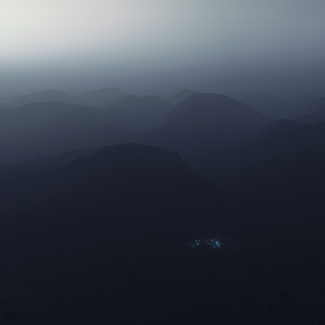 A striking image of a lone ship above a dark planet. The lighting in this images hide the texture and instead emphasizes the form of the landscape below. Dark, mysterious, isolated, with a slight atmosphere of anxiety as to what lies below. All nicely captured. VMXeo
