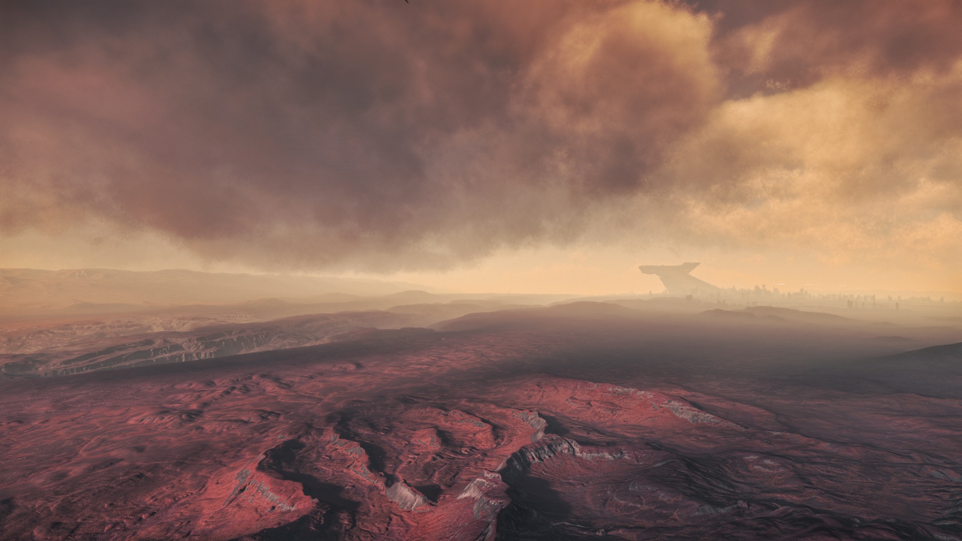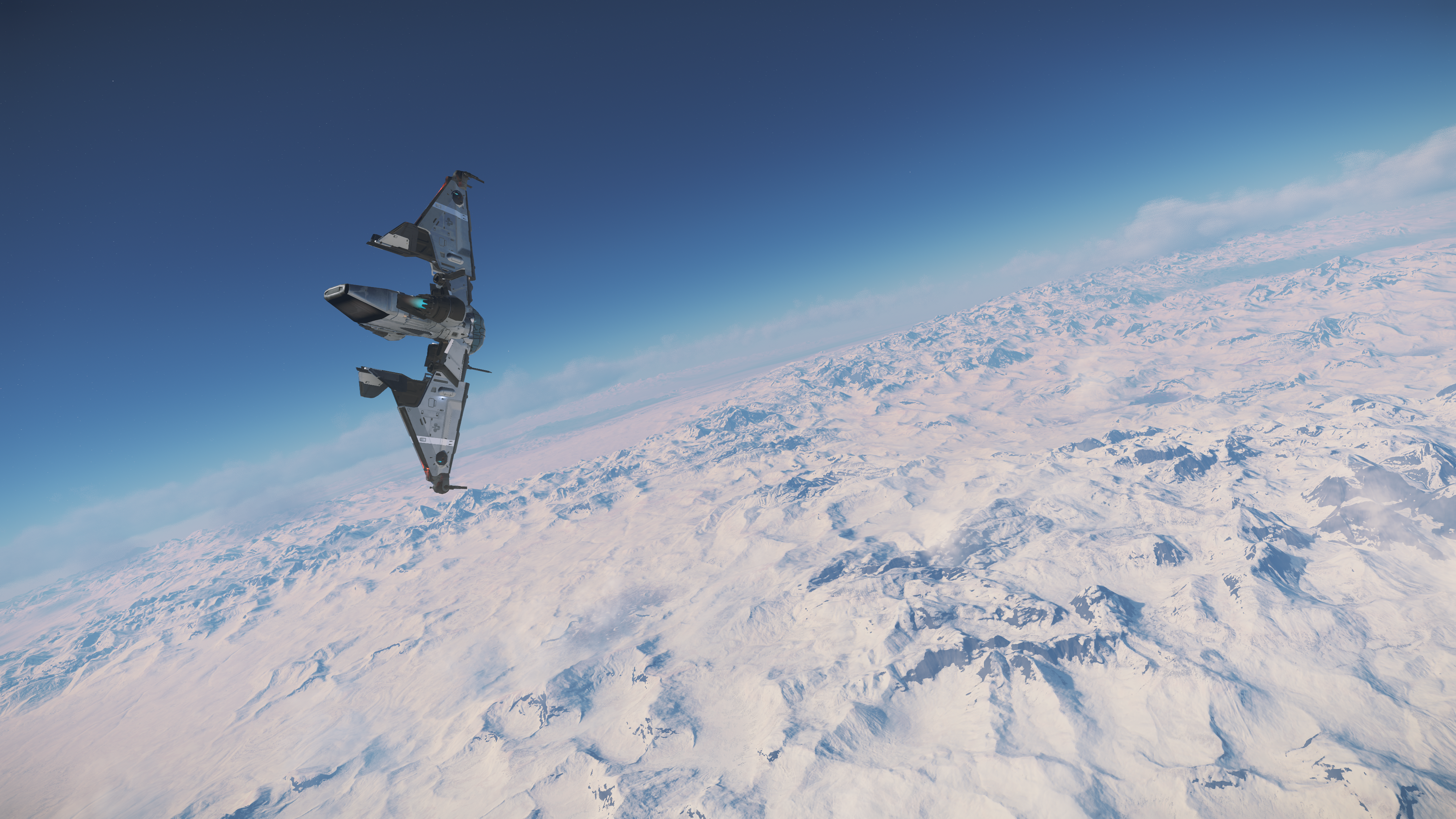 This image captures a striking level of Star Citizen’s planetary tech details all in one image. The cloud tech, mountains, surface color and elevation variations are on full display in a beautifully framed shot.MaidenAriana