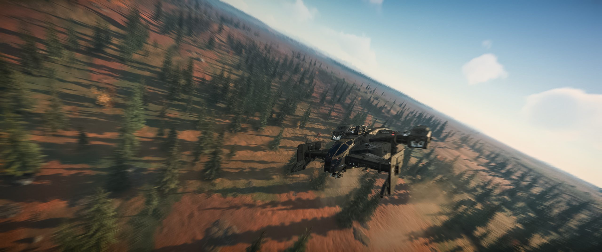 The dark silhouette of the Avenger against the eerie, brighter blueish glow from the sun just below the horizon is a great focal point and use of light vs shadow. The jagged mountains poking through the haze stretching all the way to the horizon add texture and range to this scene. The not-quite-level horizon adds a bit of good tension as well. It looks like chromatic aberration may have been used. This shot might be even stronger without it.Hasgaha
